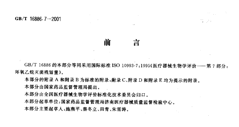 GB-T_168867-2001_醫(yī)療器械生物學(xué)評(píng)價(jià)_第7部分環(huán)氧乙烷滅菌殘留量 本標(biāo)準(zhǔn)規(guī)定了經(jīng)環(huán)氧乙烷滅菌的醫(yī)療器械單位產(chǎn)品上環(huán)氧乙烷(EO)和2-氯乙醇(ECH)殘留量的允許極限... 更新日期:2020-05-09 下載包(1)
