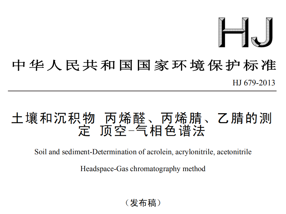 HJ 679-2013 土壤和沉積物 丙烯醛、丙烯腈、乙腈的測(cè)定 頂空-氣相色譜法 適用范圍本標(biāo)準(zhǔn)規(guī)定了測(cè)定土壤和沉積物中丙烯醛、丙烯腈、乙腈的頂空-氣相色譜法。本標(biāo)準(zhǔn)適用于土壤和沉積... 更新日期:2020-05-09 下載包(1)