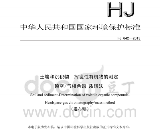 HJ642-2013土壤和沉積物揮發(fā)性有機(jī)物的測(cè)定頂空氣相色譜—質(zhì)譜法 適用范圍試驗(yàn)中所使用的內(nèi)標(biāo)、替代物和標(biāo)準(zhǔn)溶液為易揮發(fā)的有毒化合物,其溶液配制過程應(yīng)在通風(fēng)廚中進(jìn)行操作... 更新日期:2020-05-09 下載包(1)