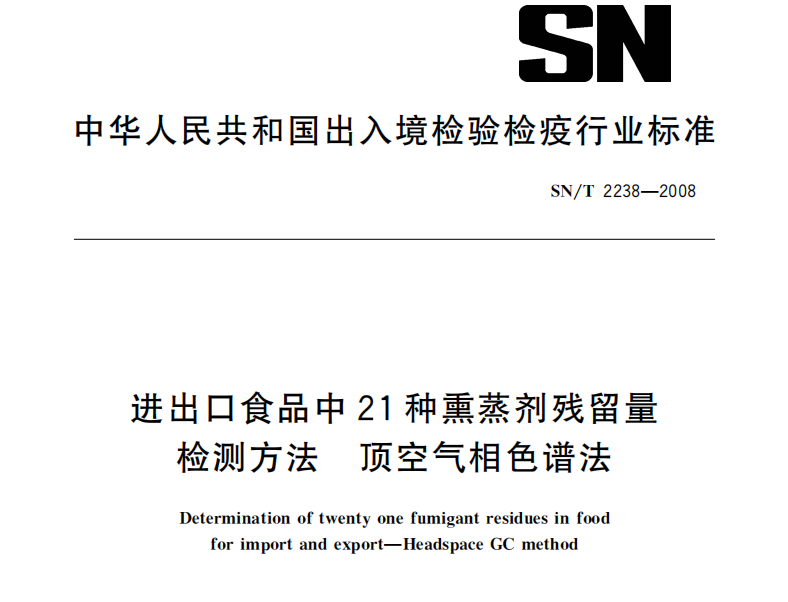 SNT 2238-2008 進(jìn)出口食品中21種熏蒸劑殘留量檢測(cè)方法 頂空氣相色譜法 SNT 2238-2008 進(jìn)出口食品中21種熏蒸劑殘留量檢測(cè)方法 頂空氣相色譜法本標(biāo)準(zhǔn)于2017-... 更新日期:2020-05-09 下載包(1)