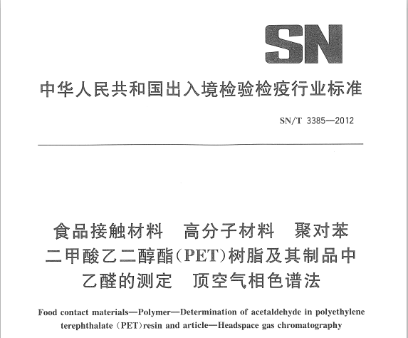 SNT 3385-2012 食品接觸材料 高分子材料 聚對(duì)苯二甲酸乙二醇酯(PET)樹脂及其制品中乙醛的測(cè)定 頂空氣相色譜法 適用范圍本標(biāo)準(zhǔn)規(guī)定了聚對(duì)苯二甲酸乙二醇酯(PET)樹脂及其制品中乙醛的頂空氣相色譜測(cè)定方法。本標(biāo)準(zhǔn)適... 更新日期:2020-05-09 下載包(1)